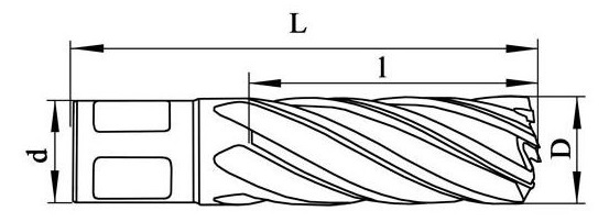 Хвостовик типа Weldon признан наиболее популярным стандартом в сфере корончатых сверл. Конструктивно он выполнен в виде цилиндрического элемента с парой опорных площадок, обеспечивающих надежное закрепление при помощи винтовых соединений в патроне оборудования.