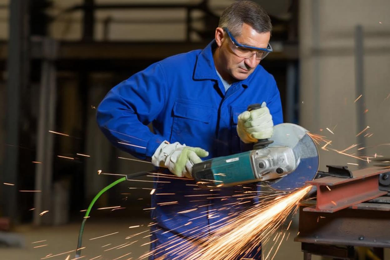 Угловая шлифовальная машина — один из самых травмоопасных инструментов. Скорость вращения диска 125 мм превышает 10 000 оборотов в минуту. При разрушении круга осколки разлетаются с огромной скоростью.