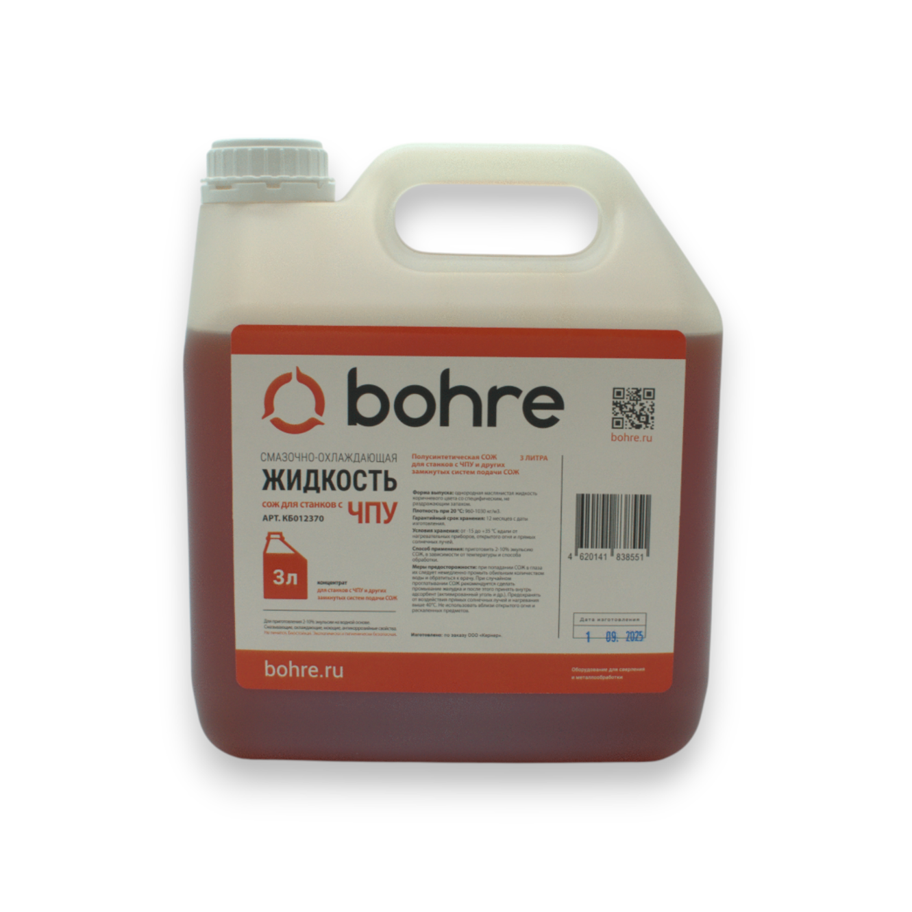 Комплект поставки смазочно-охлаждающей жидкости Bohre для станков с ЧПУ (концентрат) 3 л.